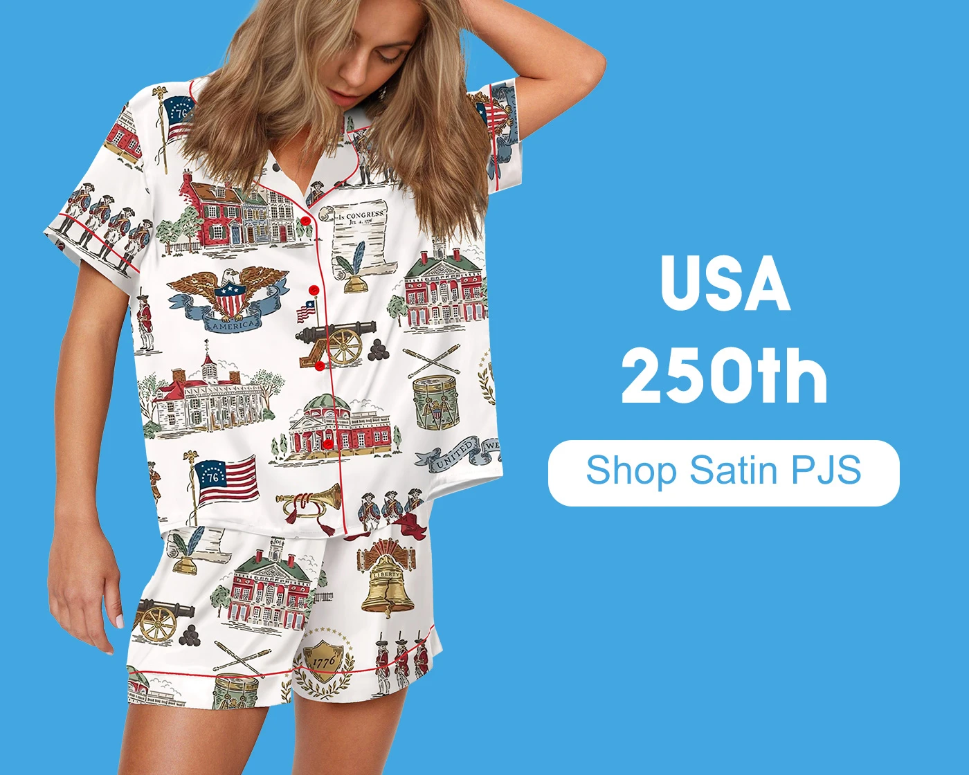Independence Day Celebration Watercolor Silky Satin Pajama Set For Women