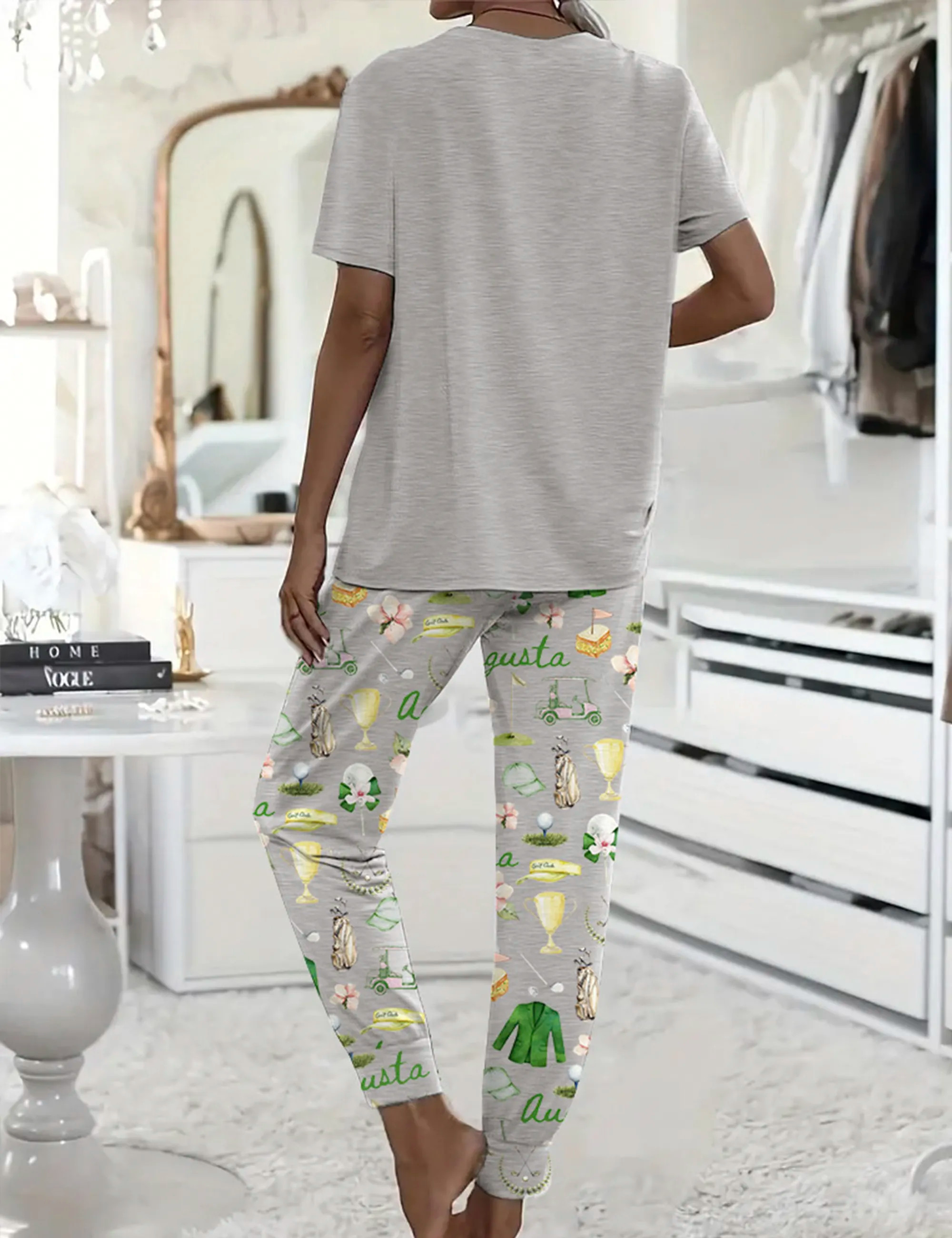 Augusta Georgia Golf Azalea Floral Casual Pajama Set For Women