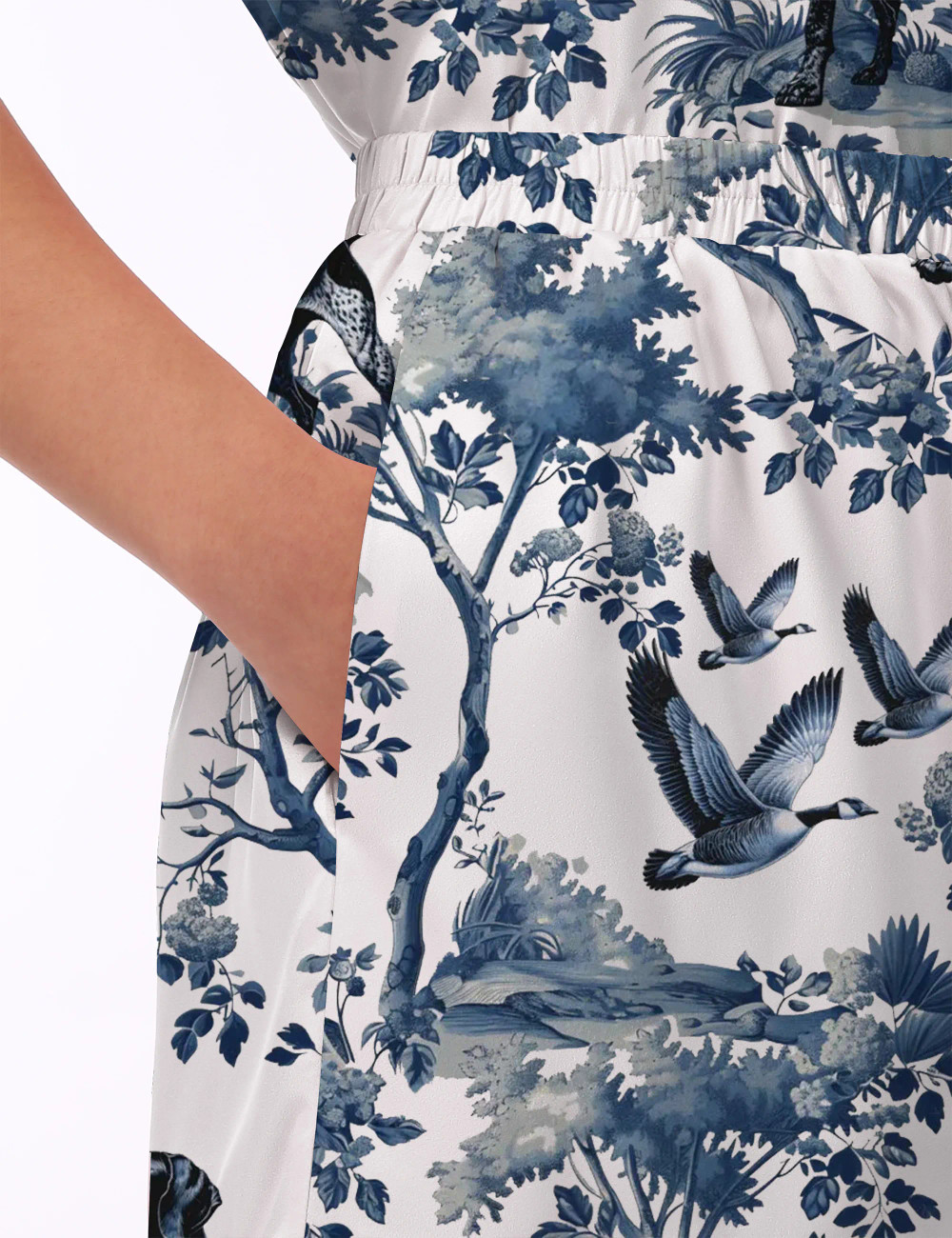 • Chinoiserie Horse Toile Contrast Wide Leg Pants For Women