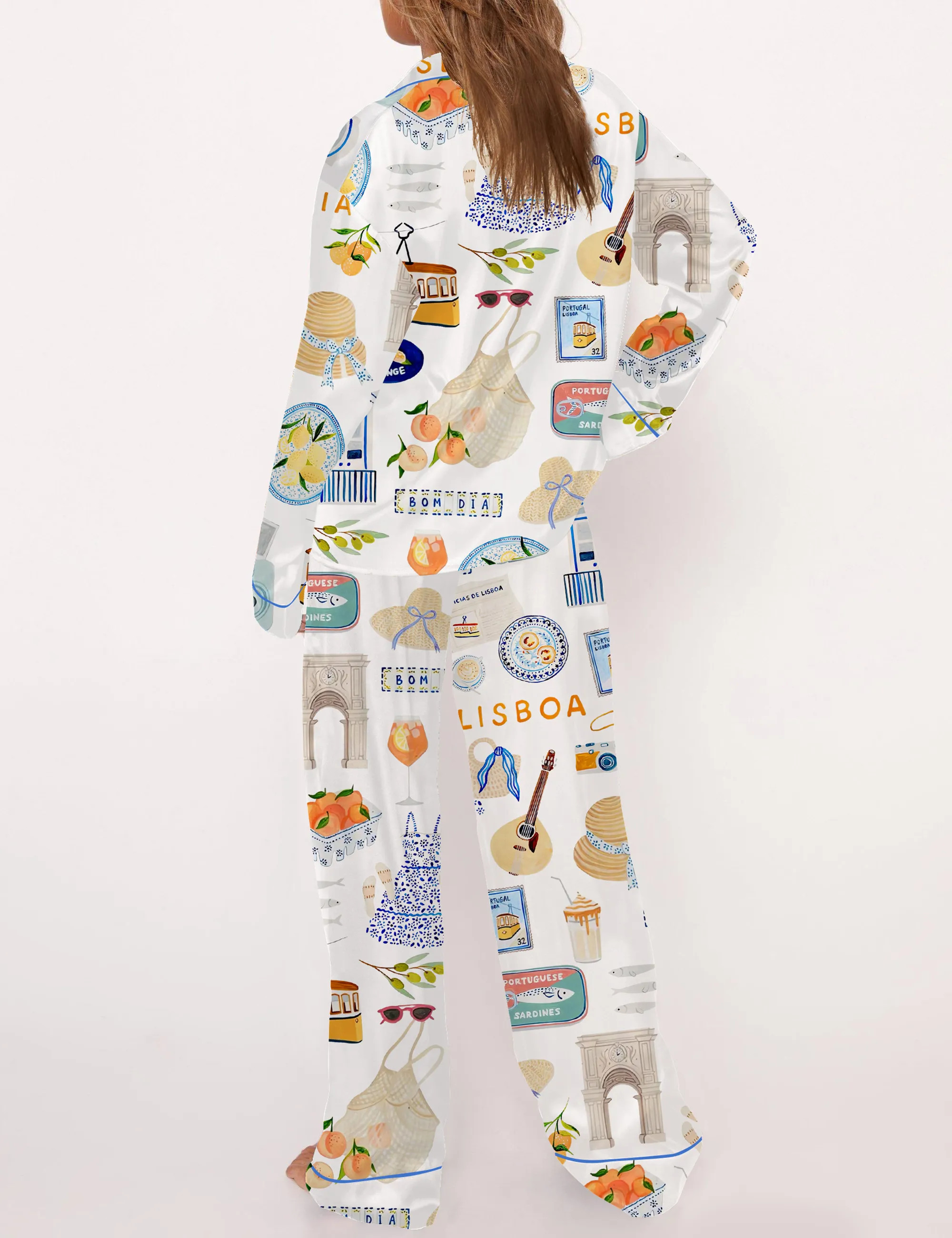 Lisbon Portugal Travel Silky Satin Pajama Set For Women