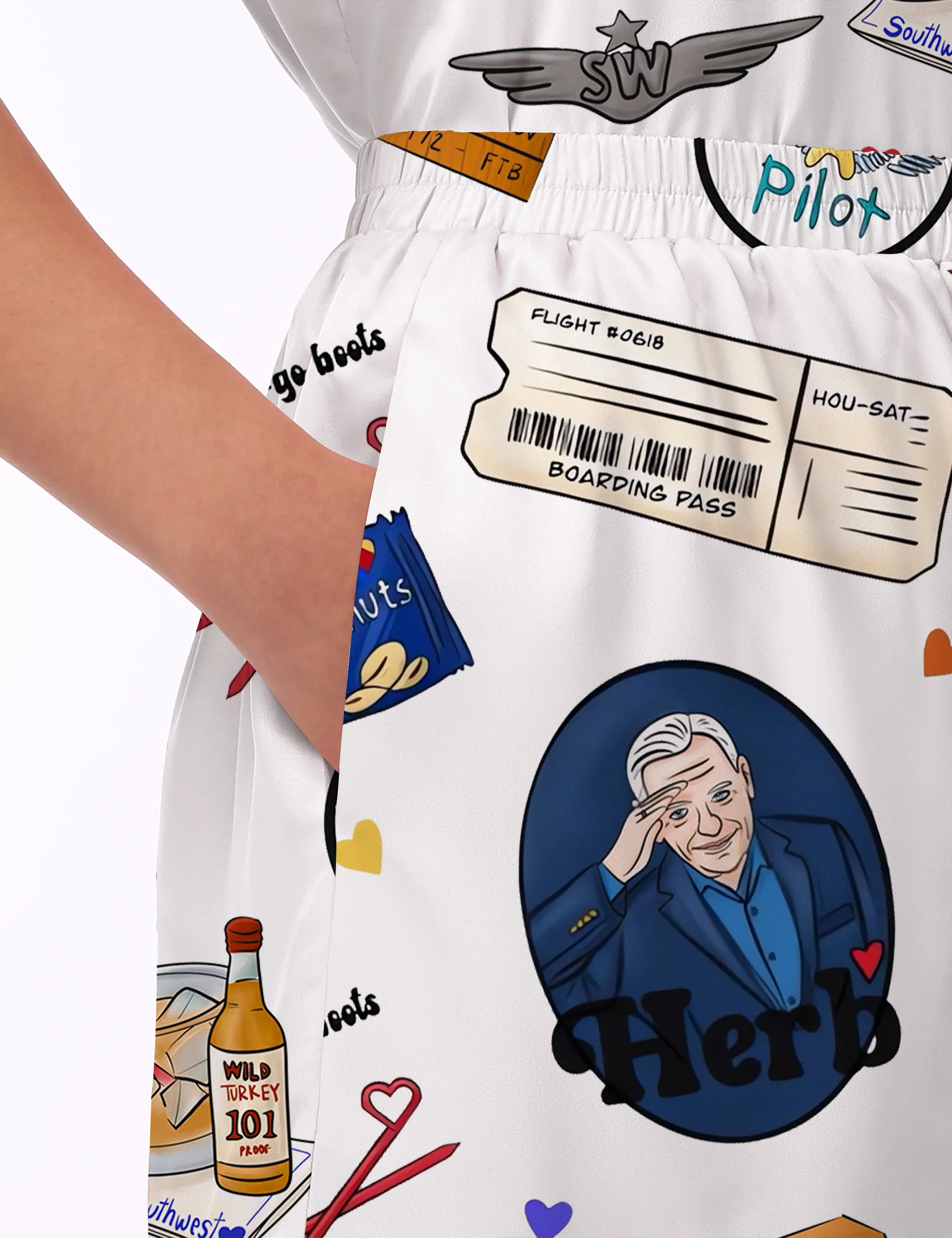 Retro Airline Inspired Silky Satin Pajama Set For Women
