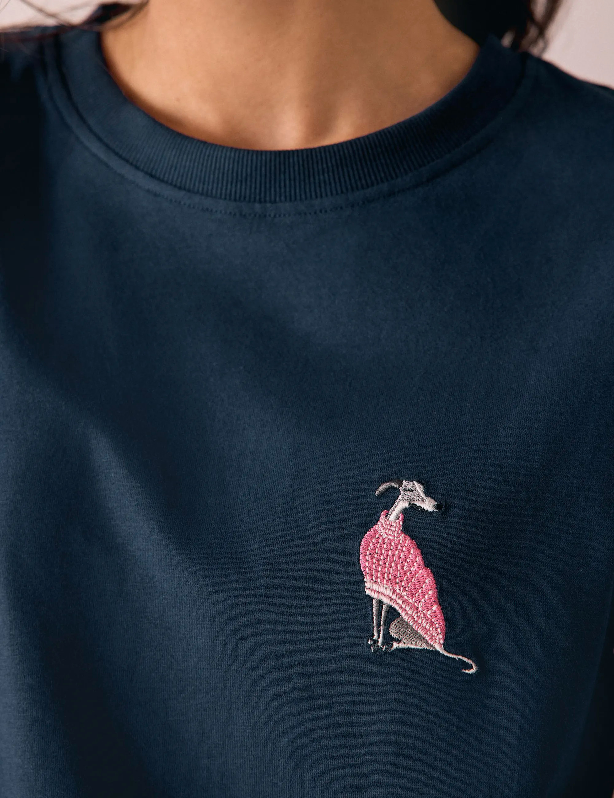 • Corgi In Space Bow Detail Ribbed Knit Pajama Set For Women